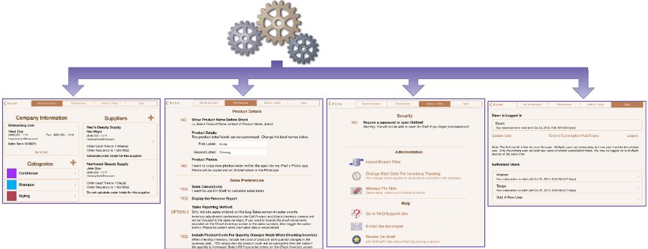 1. My Information - this is the place to information your company and local sales tax information. You also have the option to specify whether you want invoice numbers assigned to your sales invoices and to import a company logo. It is also the place to enter information about your product categories and suppliers. The supplier information is used when you place an order or email an invoice to a customer. The invoice option is only available if you elect to have On Shelf total your sales.